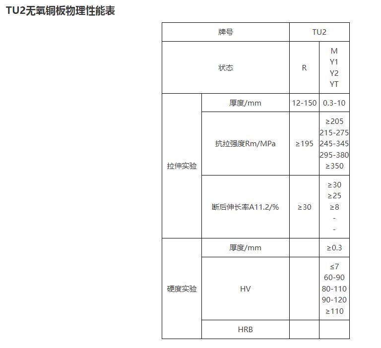 TU2無氧銅板